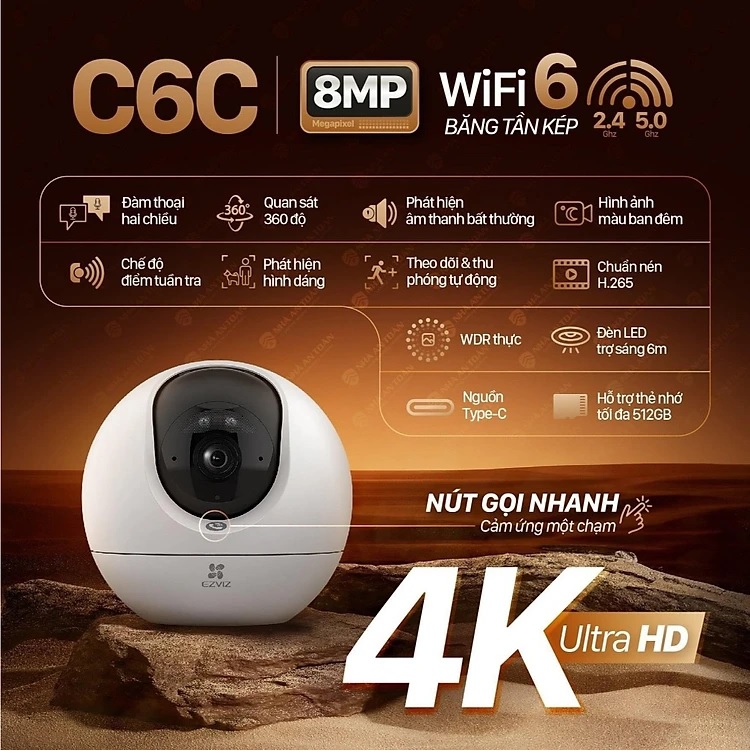 1. Vì sao nên mua camera IP WiFi không dây Ezviz C6C 8MP?