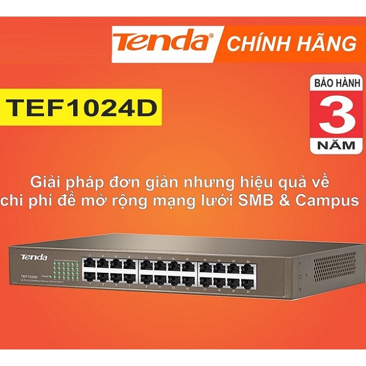 👉 Những gì TEF1024d có: Bộ chuyển mạch 24 cổng 10/100 Tenda TEF1024D được thiết kế đặc biệt để cung cấp giải pháp đơn giản để mở rộng mạng SMB và mạng khuôn viên với chi phí tốt nhất có thể. Kết nối công tắc 24 cổng này với bộ định tuyến và thêm tối đa hai mươi ba máy tính nữa hoặc các thiết bị dựa trên Ethernet khác như máy in,