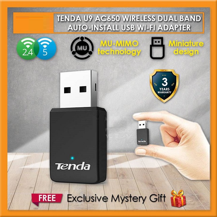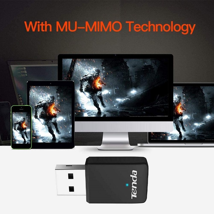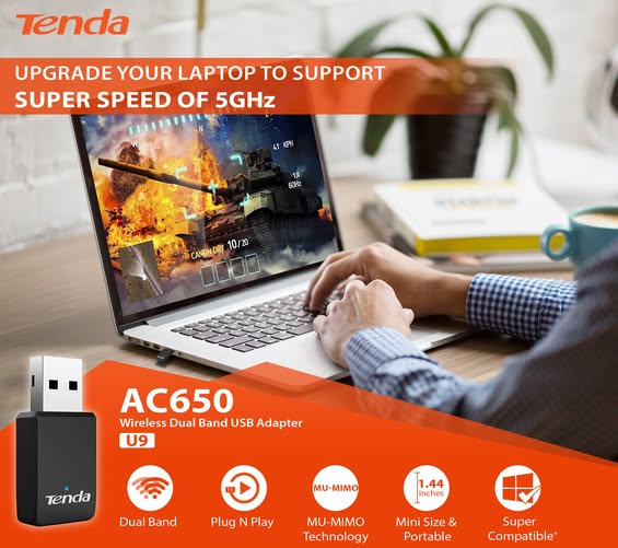 Tenda U9 là USB WiFi tích hợp chuẩn AC, có tốc độ băng thông gấp 3 lần so với chuẩn N. Hơn nữa hỗ trợ kết nối băng tần kép 5GHz (433Mbps) và 2.4GHz (200Mbps) mang lại khả năng kết nối linh hoạt và tốc độ kết nối vượt trội.
