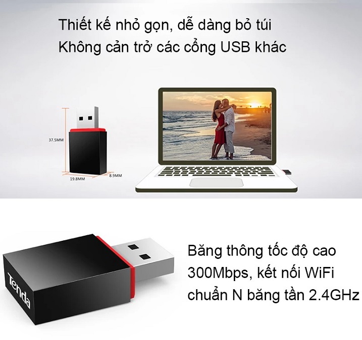 1. USB WiFi chuẩn N tốc độ 300Mbps Tenda U3 với tốc độ cao, thiết kế siêu nhỏ gọn