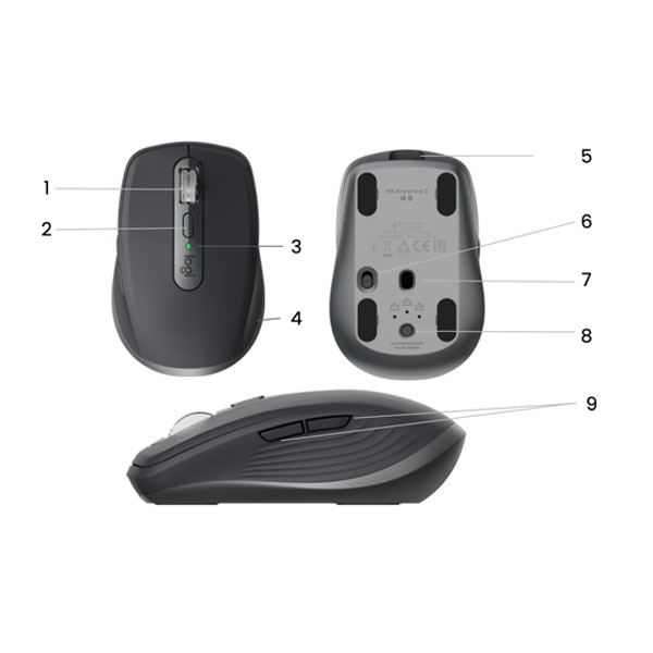 Chuột không dây Bluetooth Logitech MX Anywhere 3S (pin sạc)-Màu đen