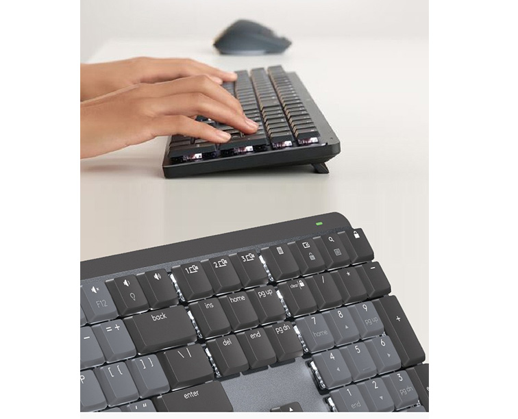 Để tự tin đồng hành cùng bạn trong mọi lĩnh vực của cuộc sống, MX Mechanical với Switch cơ học thấp có độ nảy trực quan đem lại phản hồi chính xác, đặt lại phím phản lực và ít tiếng ồn hơn để việc gõ không làm phiền những người xung quanh bạn.
