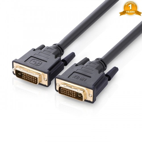 Cáp DVI Ugreen hai đầu jack chân cắm được mạ vàng 24k cho tín hiệu tốt nhất hoặc không bị rỉ sét trong quá trình sử dụng lâu dài.