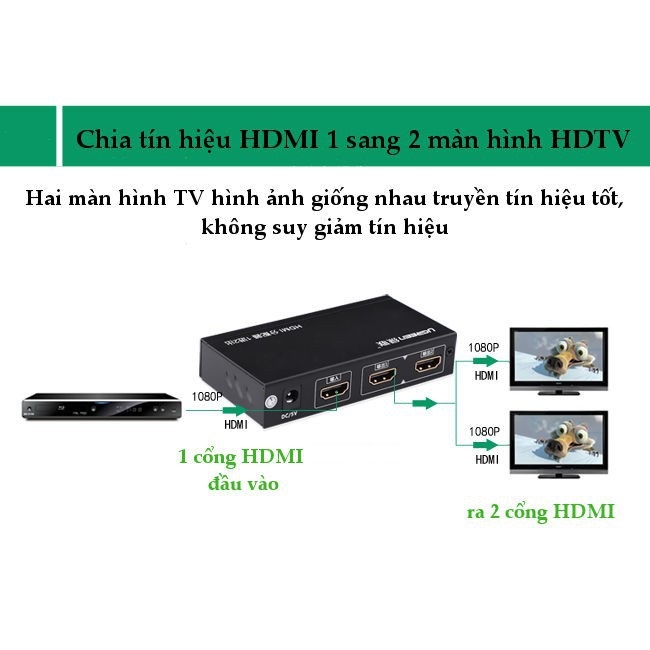 Tách một nguồn HDMI lên đến hai kết quả đầu ra cùng một lúc, mà không bị mất tín hiệu;