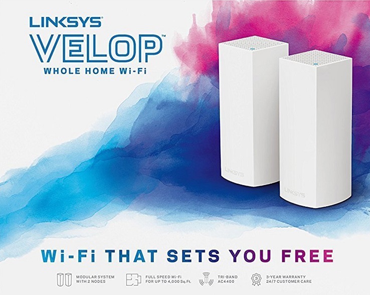 Linksys Velop is a high-performing modular Wi-Fi mesh system of nodes built to provide exceptional Wi-Fi coverage throughout your home. It sets up in minutes and delivers a flawless, ultra-fast, full-strength signal.