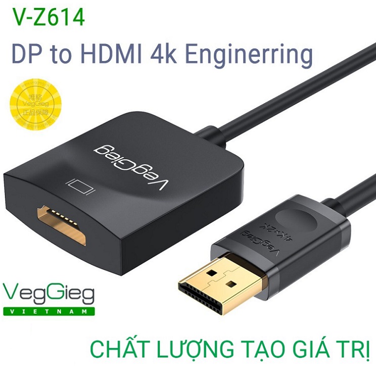 Cáp chuyển DisplayPort sang HDMI VEGGIEG VZ614 - Kết nối linh hoạt, hình ảnh sắc nét