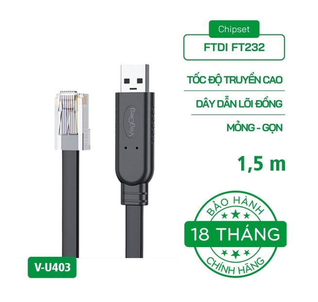 Cáp lập trình Console USB to RJ45 V-U403 Veggieg là lựa chọn lý tưởng cho các chuyên gia IT và người dùng cá nhân muốn duy trì và quản lý hệ thống mạng một cách hiệu quả và thuận tiện. Với sự tích hợp của chipset FTDI FT232 và các tính năng tiên tiến, sản phẩm này đảm bảo hiệu suất tối ưu trong mọi tình huống liên quan đến mạng máy tính.