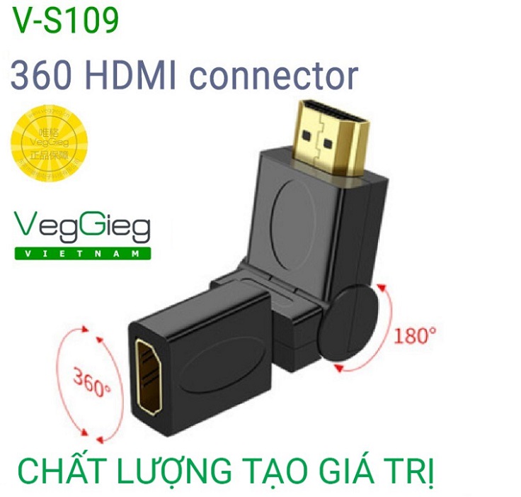 Một trong những điểm nổi bật của đầu nối HDMI VegGieg V-S109 là khả năng xoay linh hoạt với góc xoay 360 độ theo chiều ngang và 180 độ theo chiều dọc. Tính năng này giúp bạn dễ dàng điều chỉnh hướng kết nối mà không gây ảnh hưởng đến chất lượng tín hiệu. Đặc biệt, sản phẩm phù hợp với những không gian hạn chế hoặc khi cần kết nối ở các vị trí khó tiếp cận.