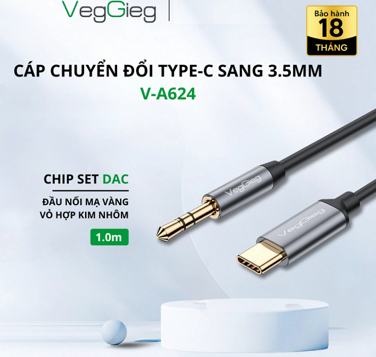 Cáp chuyển Type-C sang Audio DC 3.5mm (V-A624) Veggieg | ||||