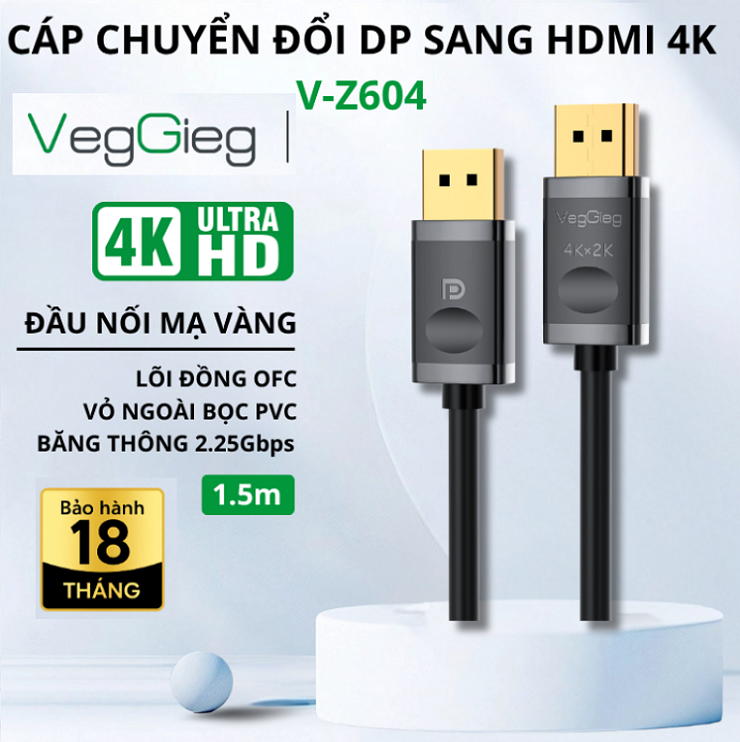 Cáp DP sang HDMI 4K (V-Z604) Veggieg | ||||