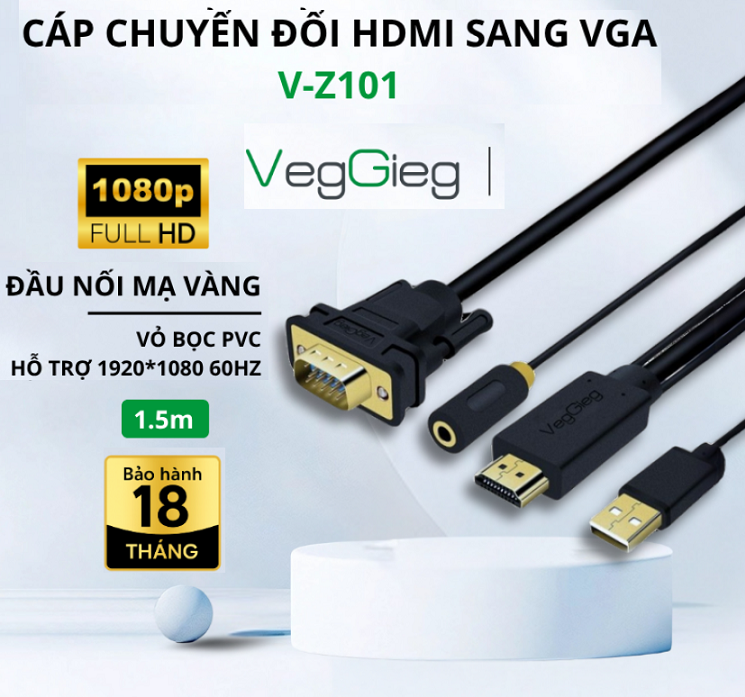 Cáp chuyển đổi HDMI sang VGA (V-Z101) Veggieg | ||||