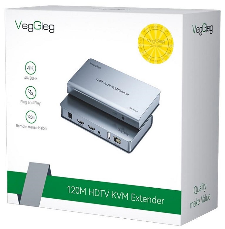Bộ kéo dài HDMI VegGieg V-HD011 4K@30Hz KVM Dài 120 Mét – Hỗ trợ USB và âm thanh