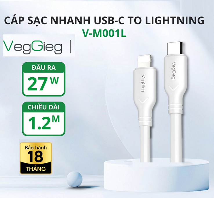 Cáp Sạc Nhanh VegGieg USB-C to Lightning V-M001L