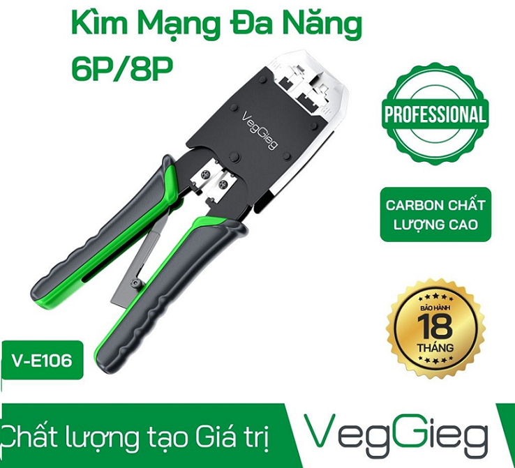 Kìm bấm mạng VegGieg V-E106 đa năng cao cấp – Bấm nhanh, cắt gọn, thao tác chính xác