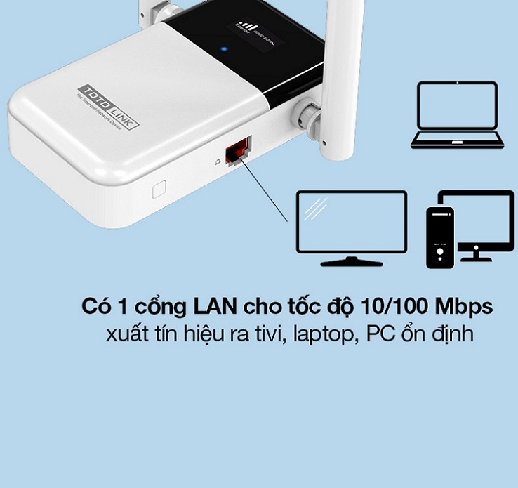 Có 1 cổng LAN cho tốc độ 10/100 Mbps xuất tín hiệu vào và ra ổn định