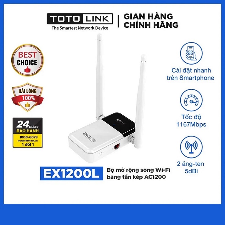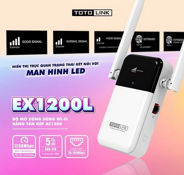 Với thiết kế có tính di động cao, tốc độ truyền tải tới 1167 Mbps, màn hình LED hiển thị trạng thái dễ theo dõi, nhiều tiện ích đi kèm, AC1200 TOTOLINK EX1200L rất thích hợp sử dụng t