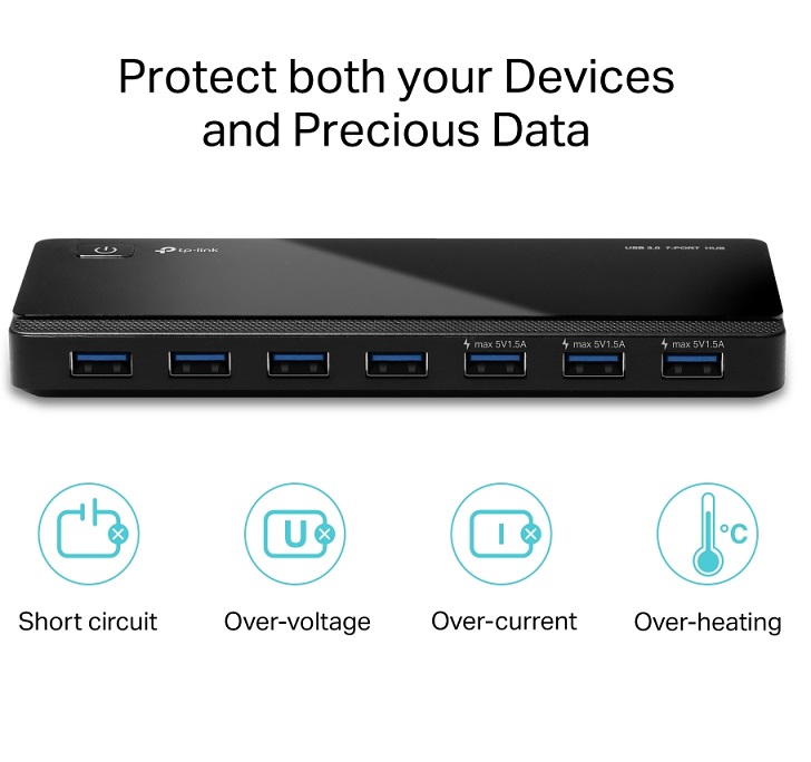 UH700 được trang bị mạch bảo vệ thông minh, giúp ngăn chặn quá nhiệt, quá dòng, quá áp và đoản mạch. Ngoài ra, bộ chia còn có bộ chống sốc điện tích hợp, bảo vệ cả thiết bị và dữ liệu khi truyền tải. UH700 hỗ trợ hot swapping, cho phép kết nối và tháo thiết bị an toàn ngay cả khi máy tính đang hoạt động.