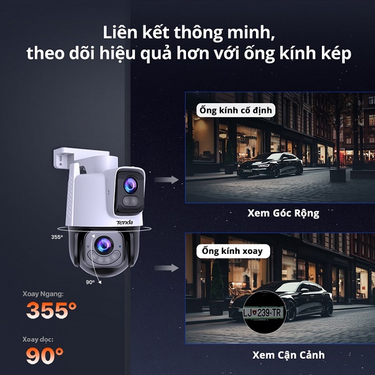 | Camera Wifi ngoài trời Tenda CH9-WCA (ống kính kép, xoay 360 độ, 6MP) | ||||