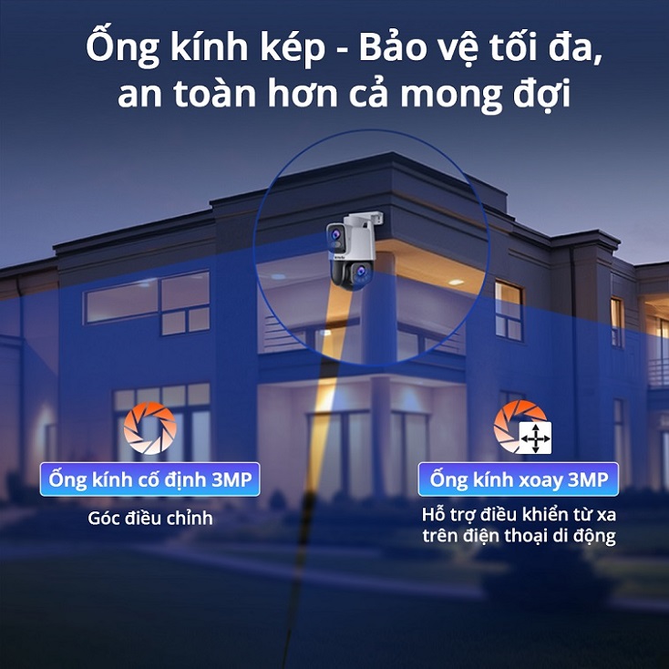 Độ phân giải 6MP với Ống Kính Kép: Trang bị hai ống kính 3MP, CH9-WCA cung cấp hình ảnh rõ nét và chi tiết, mở rộng phạm vi giám sát và giảm thiểu điểm mù.