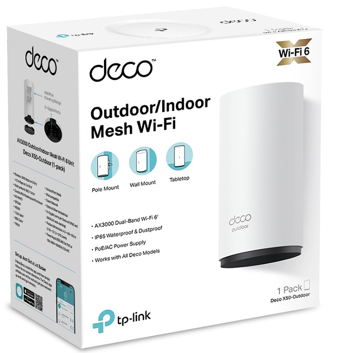 Bộ phát WiFi6 Mesh TPLink Deco X50-Outdoor (Chuẩn AX/ AX3000Mbps/ 2 Ăng-ten ngầm/ Dưới 150 User) | ||||