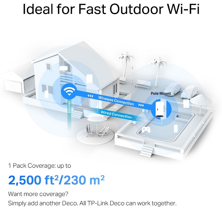 Nhờ WiFi 6, Deco X50-Outdoor cung cấp băng thông rộng hơn, độ trễ thấp hơn và kết nối ổn định hơn, ngay cả khi có nhiều thiết bị sử dụng cùng lúc.