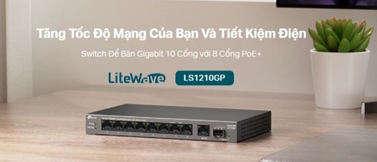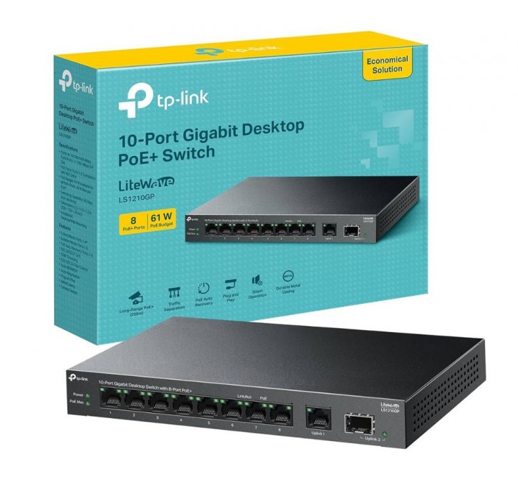 Switch 10 cổng TP-Link Litewave LS1210GP | 8 cổng PoE+ | Công Suất PoE 61W