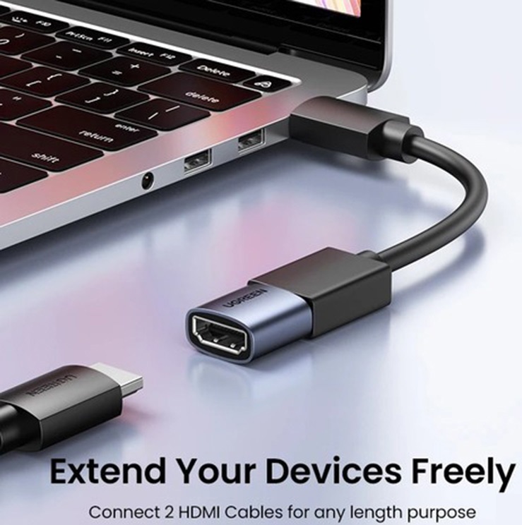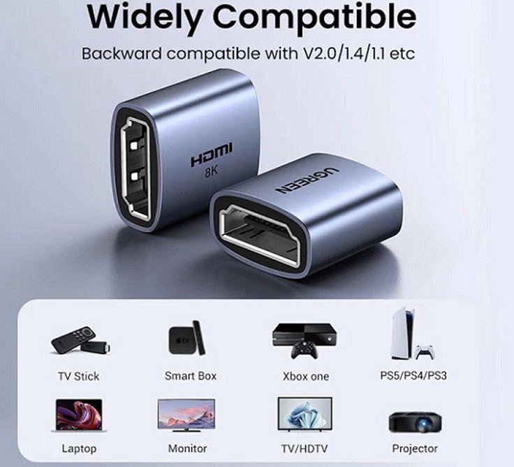 Đầu nối HDMI Ugreen 90592 này dễ dàng kết nối 2 cáp HDMI thành 1 cáp HDMI để mở rộng khoảng cách xa và chuyển đổi cổng HDMI đực thành cổng cái để kết nối các thiết bị khác, thiết bị có thể kết nối với TV Stick, PS5/4/3, Màn hình, Máy chiếu, Xbox, Máy tính xách tay, smart box, Tivi.