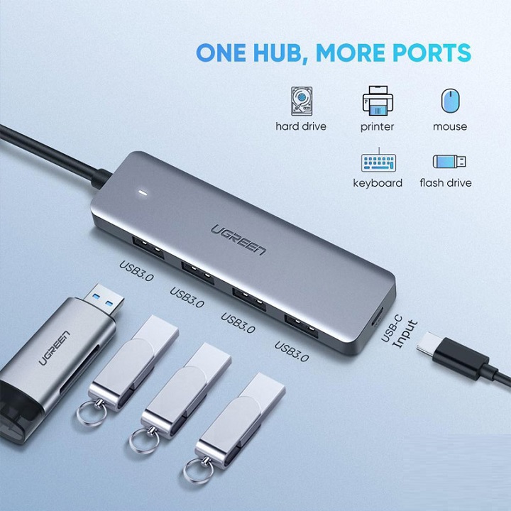 Bộ chia USB Type C sang 4 cổng USB 3.0 hỗ trợ nguồn phụ Ugreen 70336