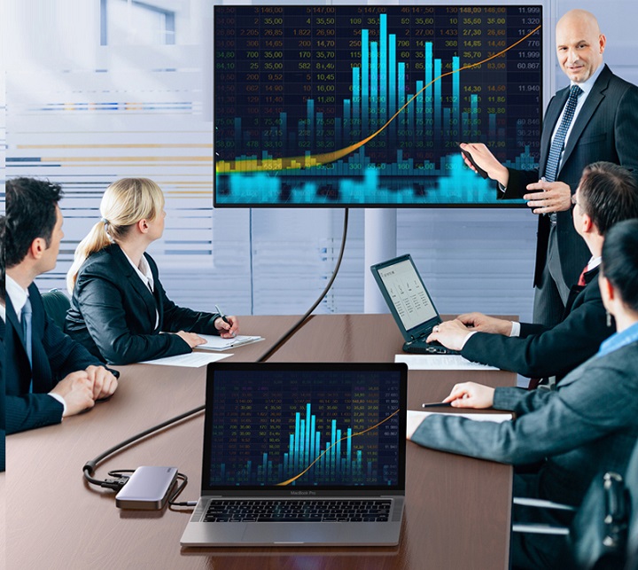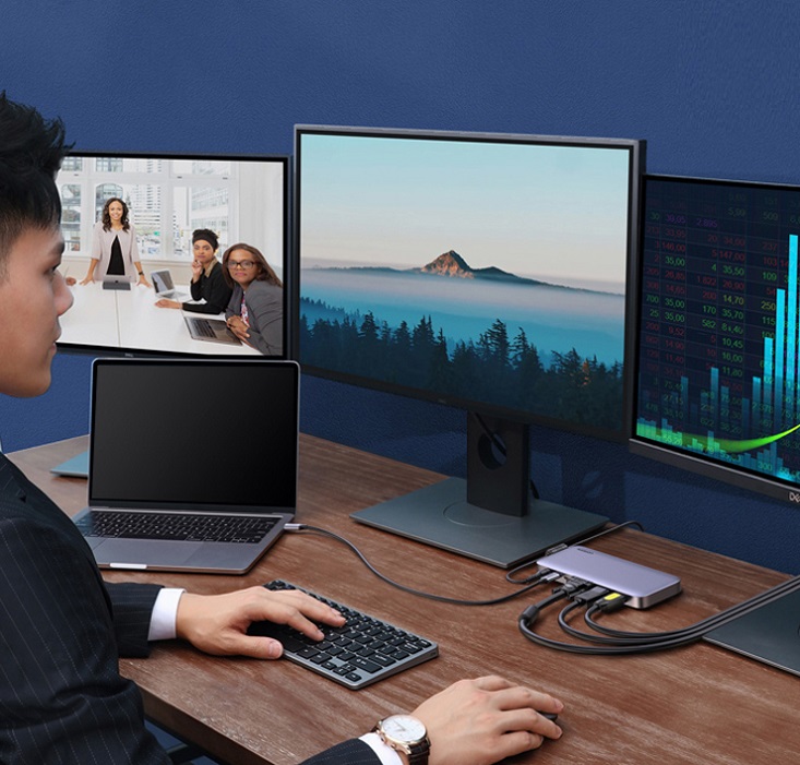 Bộ chuyển USB Type C kết nối từ máy tính ra 3 cổng hình ảnh HDMI & Displayport hỗ trợ độ phân giải 4K/60Hz, VGA độ phân giải 1920×1080/60Hz giúp bạn trình chiếu hình ảnh, video trên đa dạng các màn hình TV, máy chiếu phục vụ công việc trình chiếu, giảng dạy.