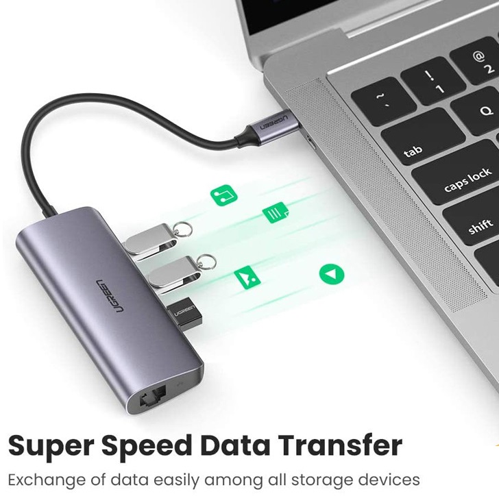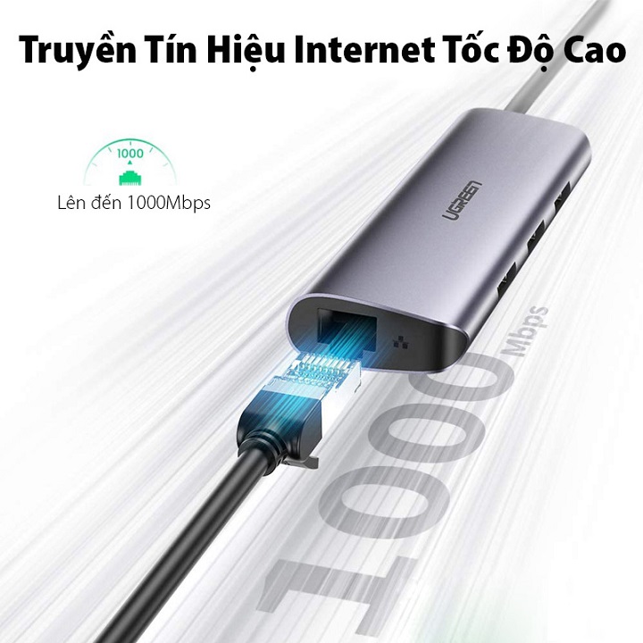 Tính năng chính cáp USB Type C to LAN 100/1000Mbps và 3 cổng USB 3.0 Ugreen 60718