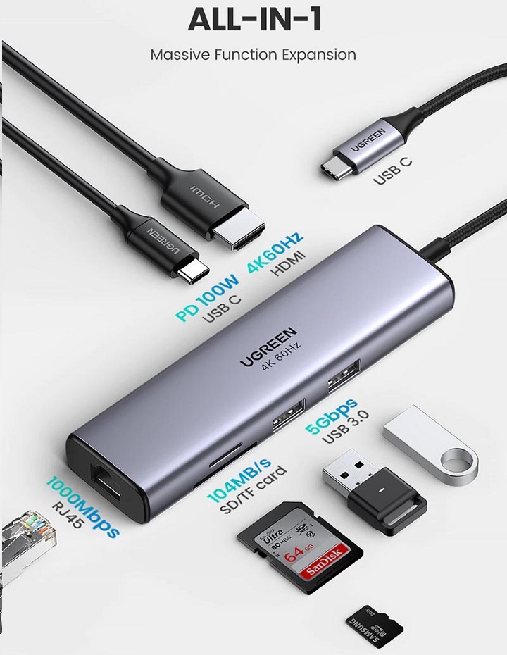 Tính năng thiết bị mở rộng USB Type C 7 in 1 Ugreen 60515: