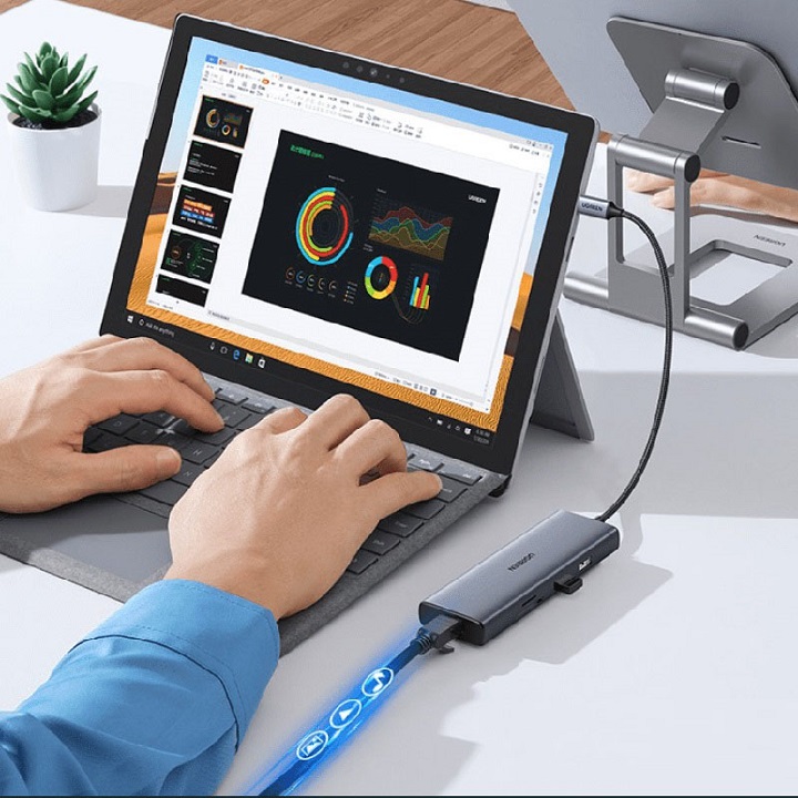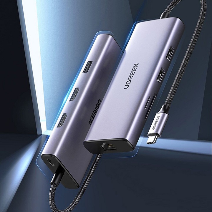 Bộ chuyển đổi USB Type C to 2 HDMI, USB 3.0, Lan, Sạc PD, đọc thẻ SD/TF Ugreen 90119 | ||||