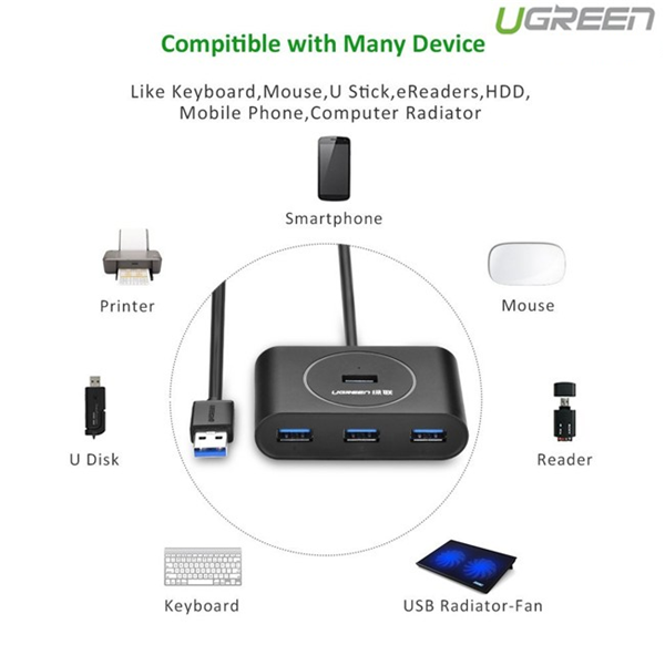 Bộ chia 4 cổng USB 3.0 dài 50cm Ugreen 20290 | ||||