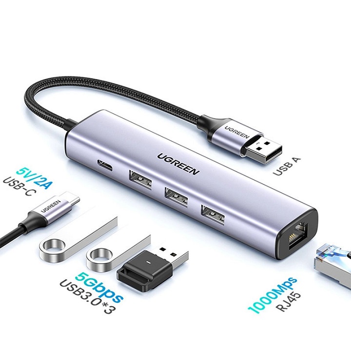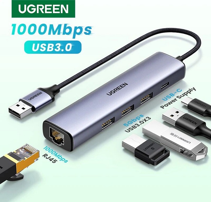 HUB chuyển đổi 5 in 1 USB 3.0 ra RJ45 1000Mbps kèm 3 cổng USB 3.0 Ugreen 60554 | ||||