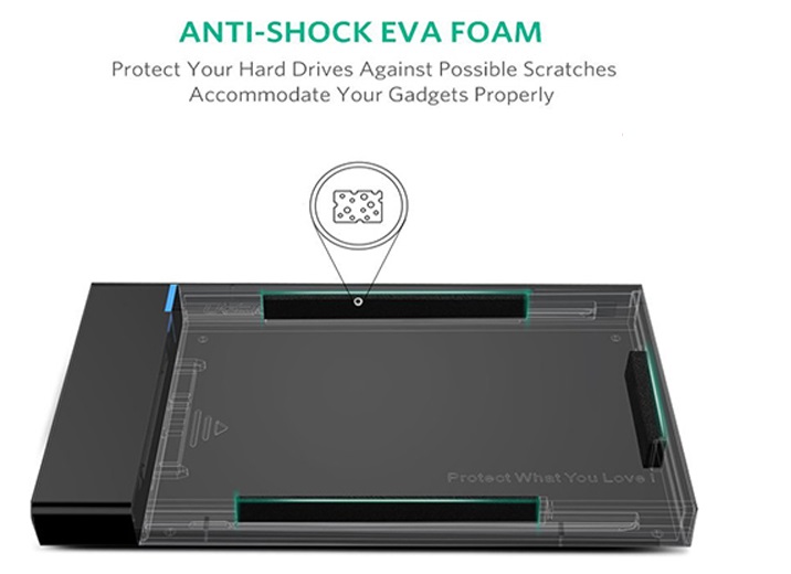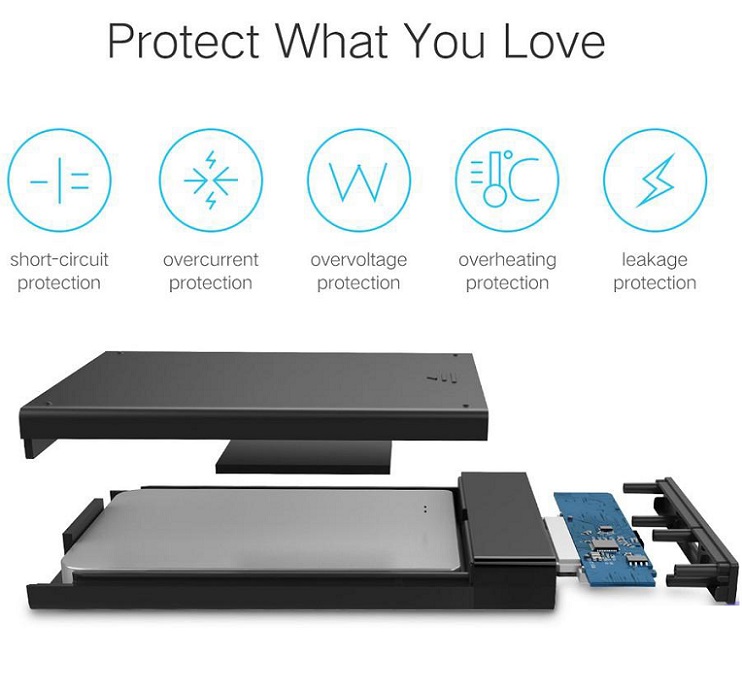 Được thiết kế đặc biệt tương thích cho ổ cứng 2.5 inch và SSD tối đa 6TB trong độ dày 7mm và 9.5mm.
