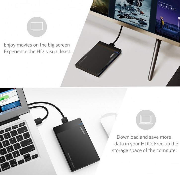 Hộp đựng ổ cứng gắn ngoài 2.5 inch USB 3.0 Ugreen 30848 có thể dễ dàng kết nối ổ cứng 2,5 inch với PC, laptop và các thiết bị khác để truyền dữ liệu giúp bảo vệ khỏi những vết trầy xước bên ngoài ổ cứng sata lưu trữ dữ liệu. Tối đa hóa việc sử dụng ổ cứng 2.5 inch và SSD.