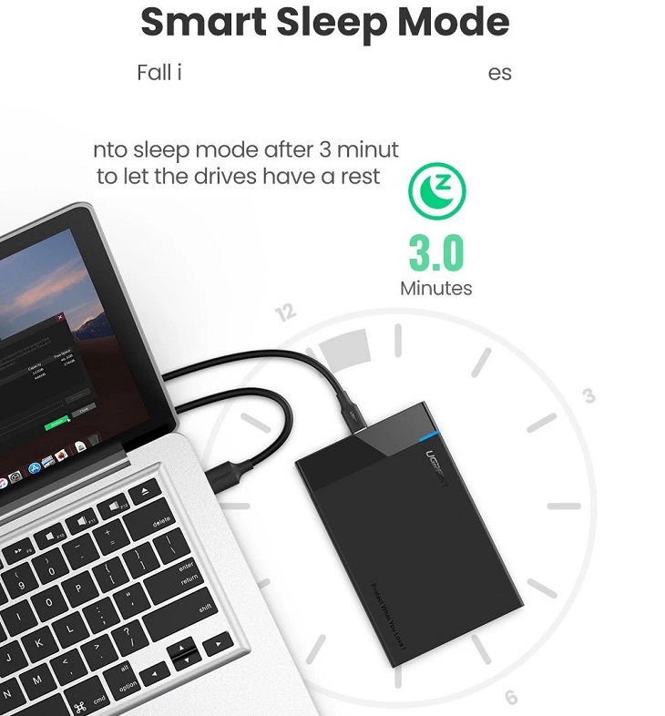 Hộp đựng ổ cứng Ugreen 50743 cho tốc độ truyền tải dữ liệu cao nhất lên đến 6Gbps khi kết nối cổng USB-C.