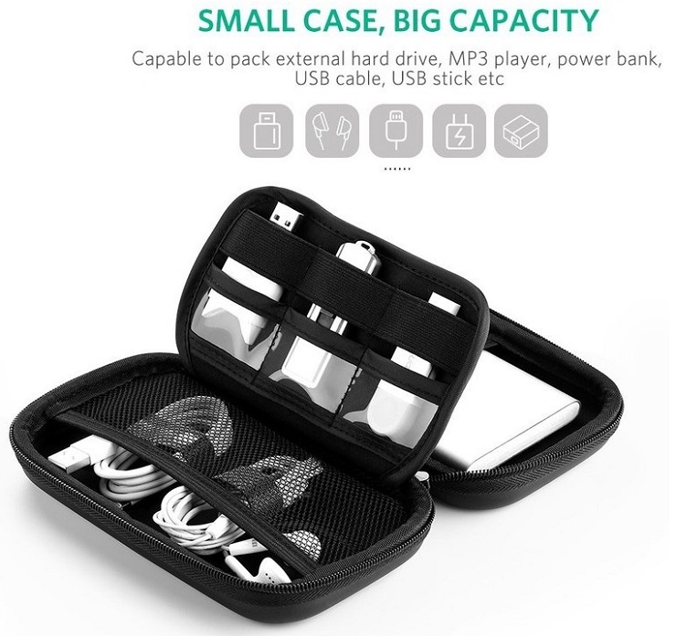 Hộp đựng đa năng ổ cứng gắn ngoài 2,5 inch, các phụ kiện dây cáp sạc Ugreen 50274 được thiết kế đựng và bảo vệ ổ cứng di động 2,5 inch, pin sạc dự phòng, điện thoại di động, dây cáp sạc, tai nghe…