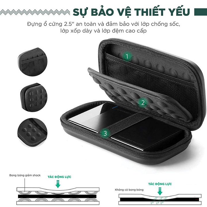 Tính năng hộp đựng ổ cứng 2.5 HDD chống sốc, màu đen Ugreen 40707