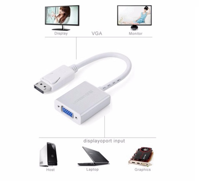 Cáp Displayport to VGA Ugreen là dòng cao cấp, hỗ trợ độ phân giải màn hình lên đến 1920×1200.