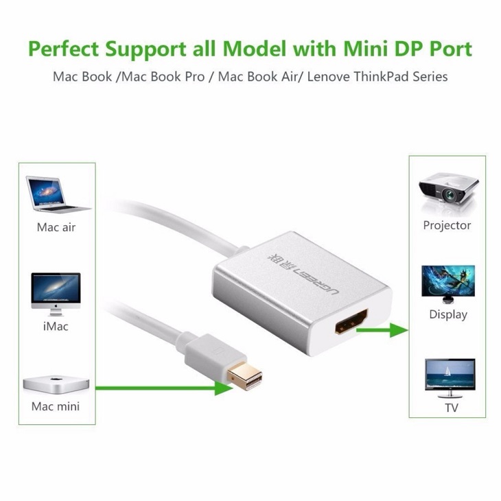 Ugreen 10401 Mini Displayport chuyển đổi tín hiệu từ Macbook, Mac Pro, Mac Air sang màn hình Tivi, LCD, máy chiếu..có hỗ trợ cổng HDMI