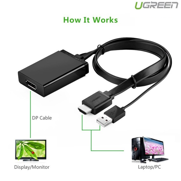 Ugreen 40238 cho phép bạn kết nối HDMI từ máy tính xách tay, Blu-ray, Card hình rời..v.v. sang tín hiệu chuẩn Displayport như màn hình LCD, HDTV