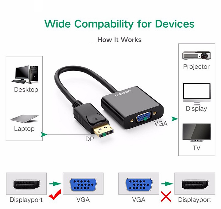 Thông số kỹ thuật cáp chuyển đổi Displayport to VGA Ugreen 20415