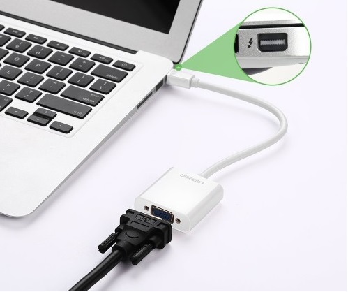 Cáp chuyển Mini Displayport sang VGA Ugreen 10403 chuyển tín hiệu từ Macbook, Mac Pro, Macbook Air…ra màn hình máy tính LCD, Tivi, máy chiếu hỗ trợ cổng VGA độ phân giải lên tới 1920x1080P.