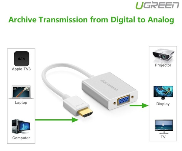 Chức năng chính của cáp HDMI ra VGA Ugreen 40212 dùng để chuyển đổi từ cổng HDMI sang VGA. Cáp chỉ dùng chuyển đổi 1 chiều không chuyển được ngược lại. Cắm là chạy không cần cài đặt phần mềm.