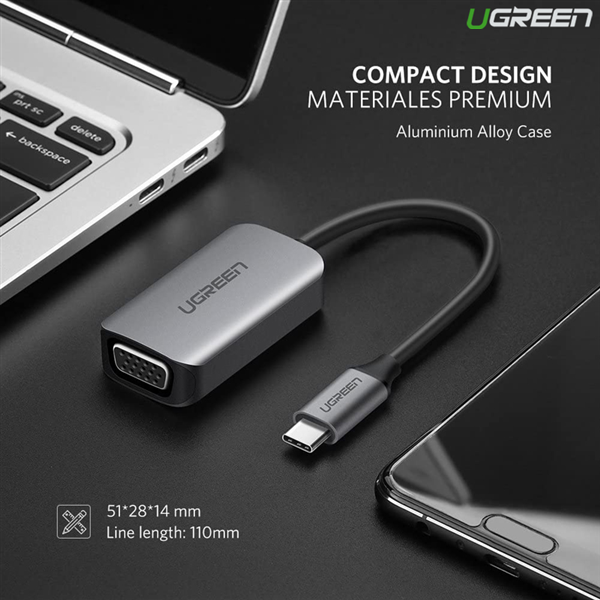 Cáp chuyển USB Type C sang VGA Ugreen 50316 hỗ trợ Full HD 1080P kết nối từ máy tính xách tay ra màn hình TV hoặc máy chiếu để trình chiếu.