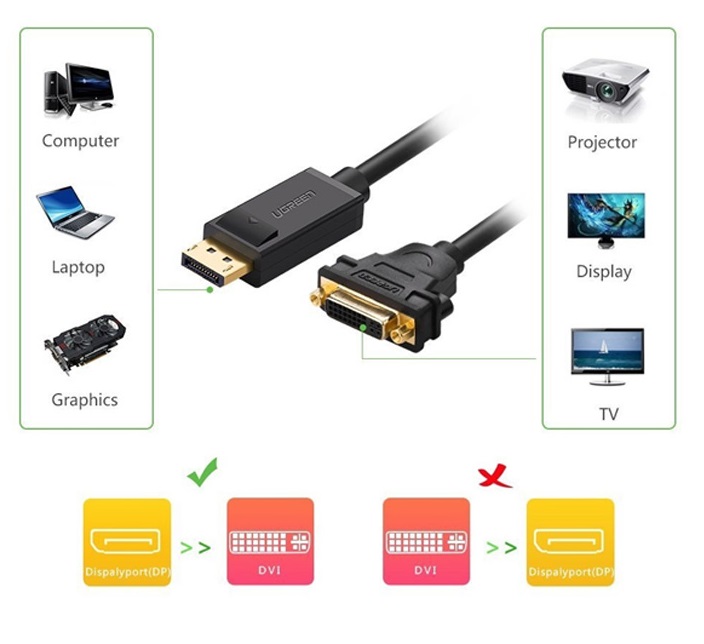 Cáp chuyển đổi Displayport to DVI 24+5 âm Ugreen 20405 | ||||