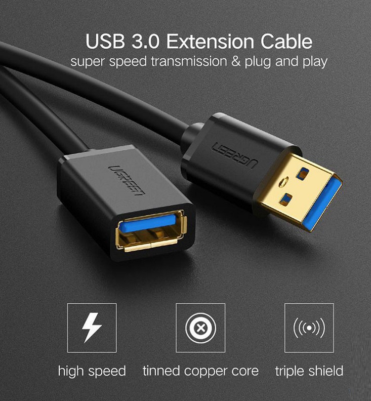 Cáp kéo dài USB 3.0 A dương sang âm Extension Ugreen 30126 cho phép bạn mở rộng ổ đĩa của bạn flash, ổ cứng, đầu đọc thẻ, USB hub 3.0, máy in, máy ảnh, vv với tốc độ lên đến 5Gbps (Super Speed)