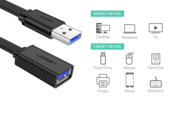 Cáp USB 3.0 nối dài 1,5M Ugreen 10807 cho phép bạn mở rộng ổ đĩa flash, ổ cứng, đầu đọc thẻ, hub USB 3.0, máy in, máy ảnh…