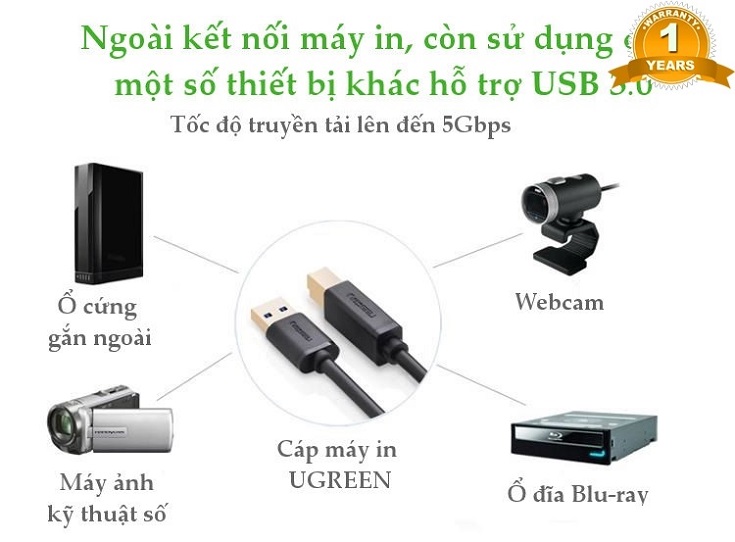 Cáp USB 3.0 AM to BM dài 1M máy in Ugreen 30753 | ||||
